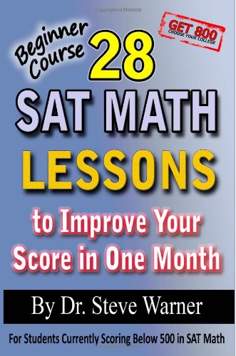 This Beginner Course from the "28 SAT Math Lessons" series gives you all of Dr. Steve Warner's unique tips, tricks and tactics that he has developed over the last 14 years to get even the lowest scoring math students up to a 600 in SAT math. Dr. Warner has used his Ph.D. in mathematics to create the ultimate system for generating huge score increases in SAT math with only 20 minutes of preparation each day.